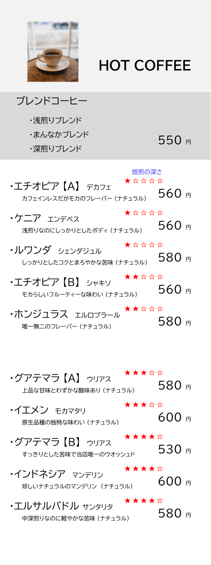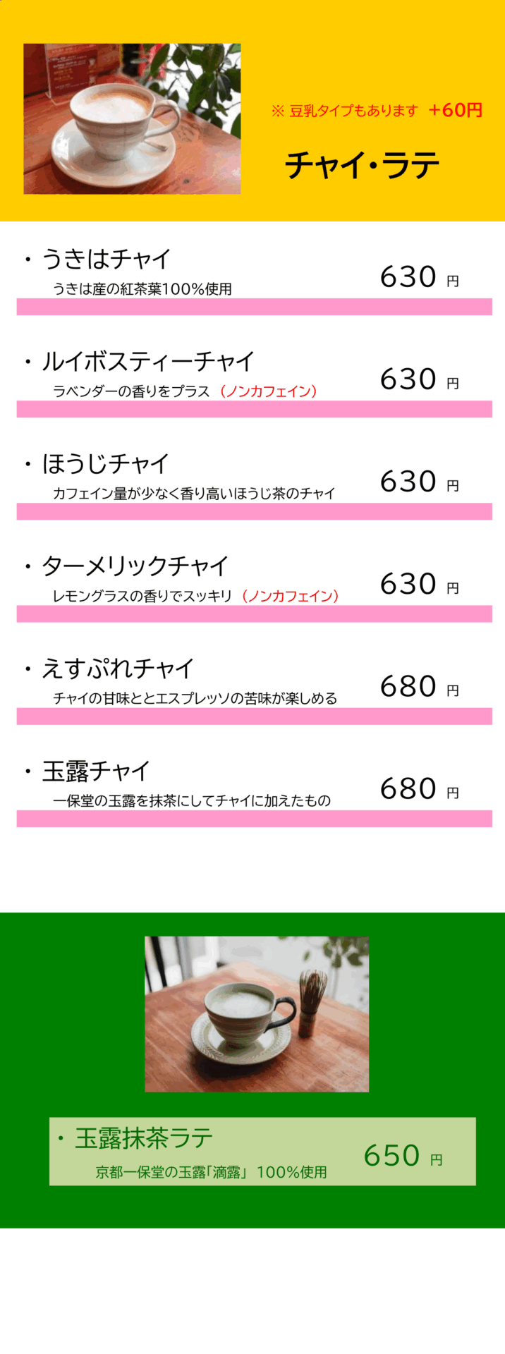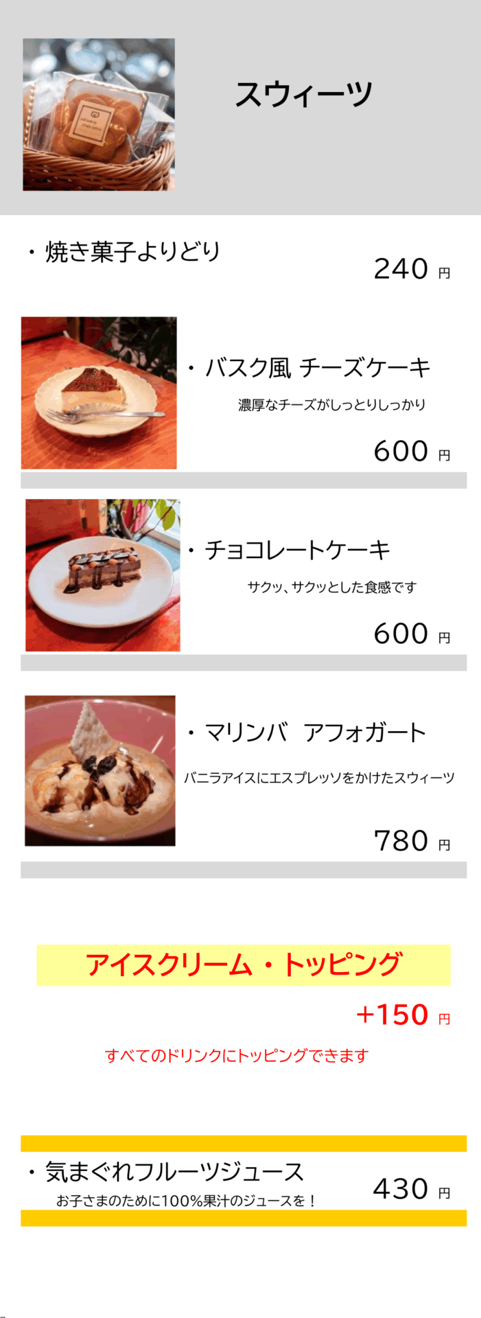 店内メニュー
